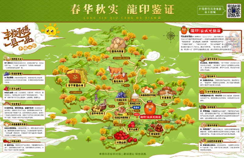 從黃土地上看點滴耕耘,從人世間里看春華秋實。承德土地廣闊、歷史悠久,物產(chǎn)豐盈。活動現(xiàn)場,板城酒業(yè)創(chuàng)意打造“豐收承德 一縣一品”專題宣傳活動,通過選取承德市各地極具當?shù)靥厣霓r(nóng)產(chǎn)品,以手繪地圖為形式,對外發(fā)布,生動展現(xiàn)了承德物阜民豐的生活狀態(tài)。