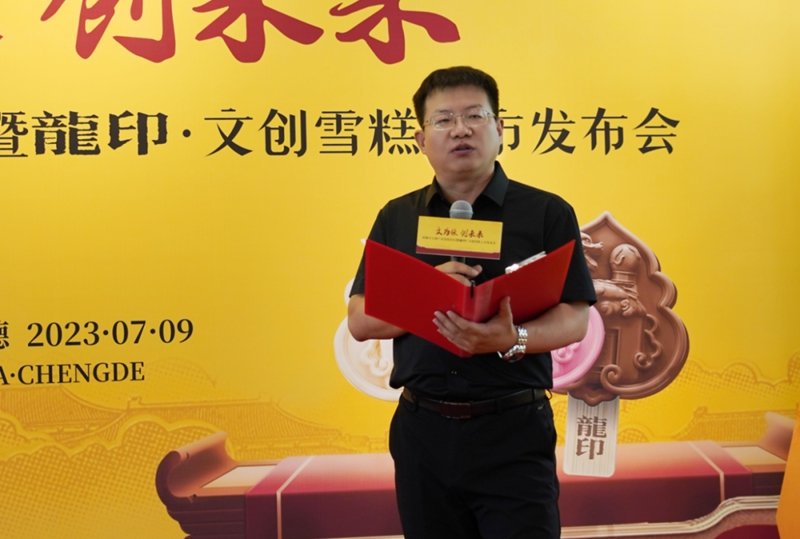 承德市總工會主席關繼高向前來參加本次發(fā)布會的各位領導、各位來賓表示熱烈的歡迎與衷心的感謝;本次承德市文創(chuàng)產業(yè)發(fā)展論壇旨在進一步提升承德市文旅內涵,激發(fā)文旅消費潛能,對承德市皇家文化、飲食文化、酒文化、旅游康養(yǎng)文化進行深入探討,促進跨界融合,助力傳統(tǒng)文化創(chuàng)新表達;板城酒業(yè)推出龍印·文創(chuàng)雪糕,必將為承德市文化、文創(chuàng)產業(yè)的繁榮發(fā)展以及建設國際生態(tài)旅游城市增添濃墨重彩的一筆;希望板城酒業(yè)能夠繼續(xù)秉承冀酒振興使命,為全力書寫“生態(tài)強市、魅力承德”現(xiàn)代化新篇章作出更大貢獻!