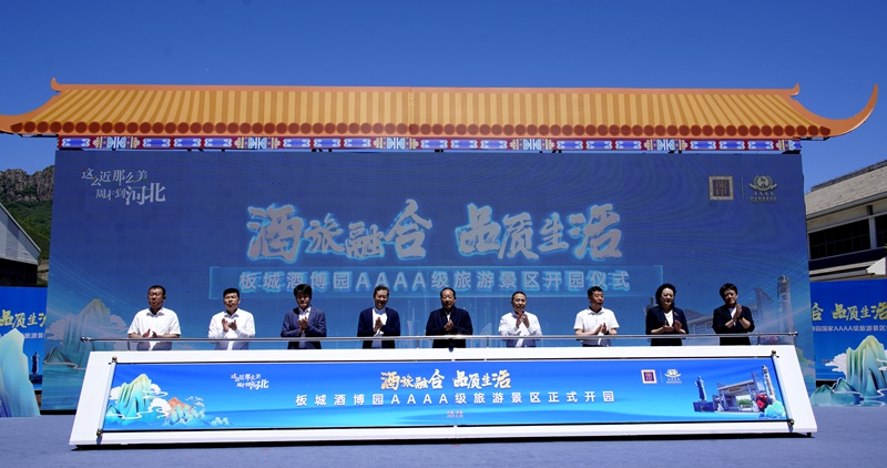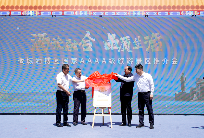 活動(dòng)現(xiàn)場,承德市政協(xié)黨組書記、主席吳清海;承德市人大副主任郭士剛;承德縣人民政府縣長柳雪松;河北板城酒業(yè)黨委書記、總經(jīng)理張春生登臺(tái),共同為板城酒博園國家4A級(jí)旅游景區(qū)進(jìn)行揭牌。