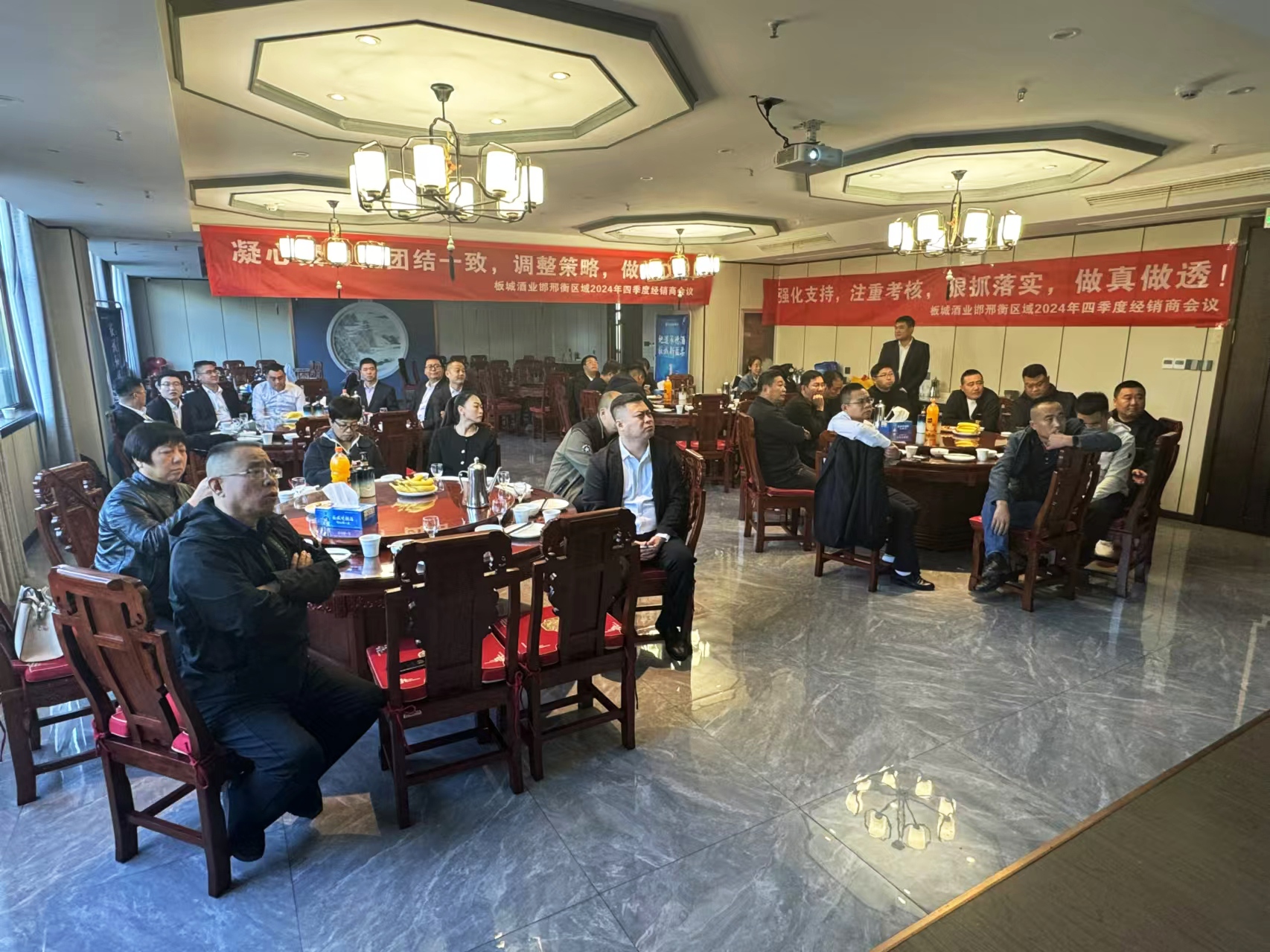 板城酒業(yè)銷(xiāo)售副總經(jīng)理?xiàng)钭谳x,板城酒業(yè)邢臺(tái)戰(zhàn)區(qū)龍印部區(qū)域經(jīng)理吳越,邢臺(tái)區(qū)域全體經(jīng)銷(xiāo)商、團(tuán)購(gòu)商以及邢臺(tái)區(qū)域業(yè)務(wù)經(jīng)理及業(yè)務(wù)人員共同出席會(huì)議。