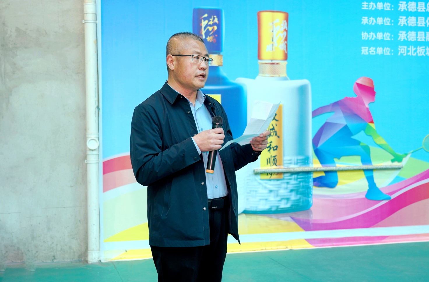 承德縣教育和體育局班子成員、體育工作指導(dǎo)中心主任朱瑞東在開幕式上宣布本屆“板城和順”杯羽毛球團(tuán)體賽正式開幕。