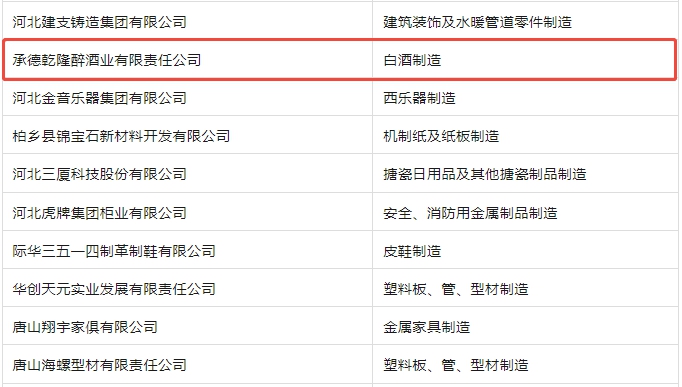 近日,河北省輕工行業(yè)協(xié)會日前發(fā)布了我省2024年度輕工業(yè)50強(qiáng)企業(yè)榜單。三河匯福糧油集團(tuán)有限公司、君樂寶乳業(yè)集團(tuán)股份有限公司、今麥郎食品股份有限公司、邯鄲美的制冷設(shè)備有限公司、秦皇島金海糧油工業(yè)有限公司、風(fēng)帆有限責(zé)任公司等企業(yè)位居前列,河北板城酒業(yè)(承德乾隆醉酒業(yè)有限責(zé)任公司)再次實力入選2024年度河北省輕工業(yè)50強(qiáng)企業(yè)榜單。