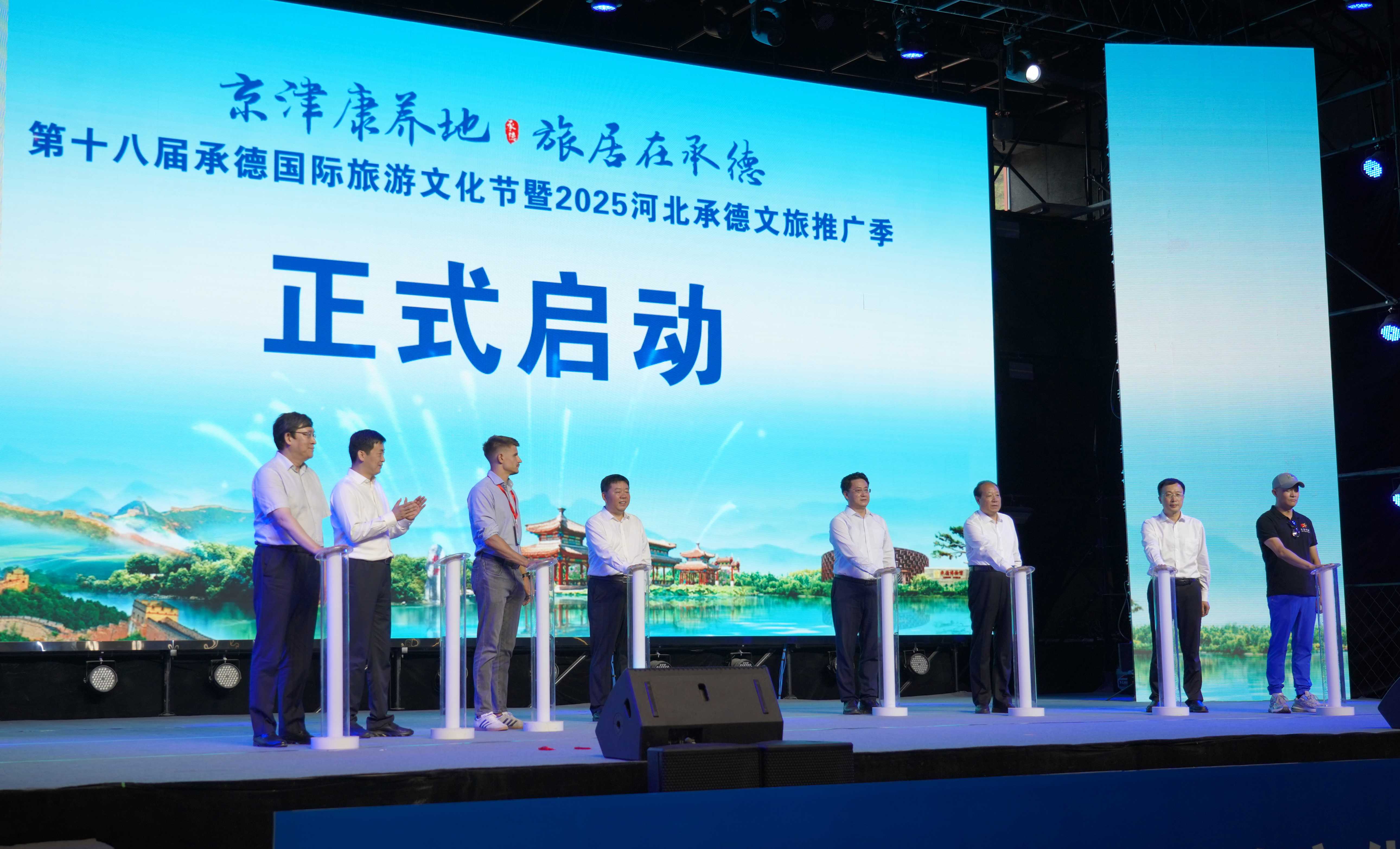 在熱烈的氛圍中,與會(huì)領(lǐng)導(dǎo)共同按下啟動(dòng)裝置,標(biāo)志著第十八屆承德國(guó)際旅游文化節(jié)暨2025河北承德文旅推廣季正式啟幕。