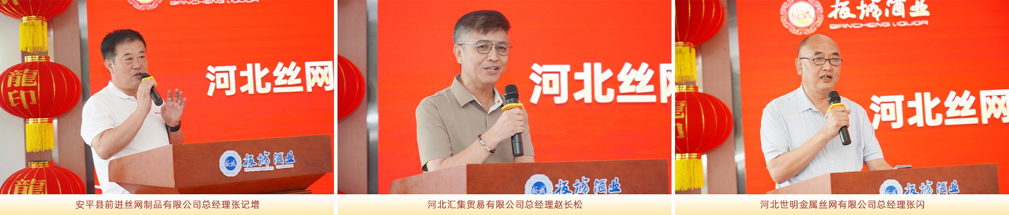 河北省絲網(wǎng)產(chǎn)業(yè)協(xié)會會長梁畔逢在致辭中講到:“今天的活動,不僅是河北省絲網(wǎng)產(chǎn)業(yè)協(xié)會與板城酒業(yè)的戰(zhàn)略簽約儀式,更是一次跨界融合、創(chuàng)新共享的行業(yè)盛會。我們期待通過這次合作與交流,以文化共鳴為紐帶,以資源互補(bǔ)為基石,共同探索‘河北制造+河北品牌’的協(xié)同發(fā)展新模式——讓絲網(wǎng)產(chǎn)業(yè)的創(chuàng)新技術(shù)為酒業(yè)包裝升級注入新動力,讓板城酒業(yè)的品牌勢能為絲網(wǎng)企業(yè)產(chǎn)業(yè)鏈賦能增值。此次跨界聯(lián)動,將會為冀商融合發(fā)展開辟新路徑,為產(chǎn)業(yè)跨界共贏注入新動能,共同助推河北產(chǎn)業(yè)邁上高質(zhì)量發(fā)展快車道。”