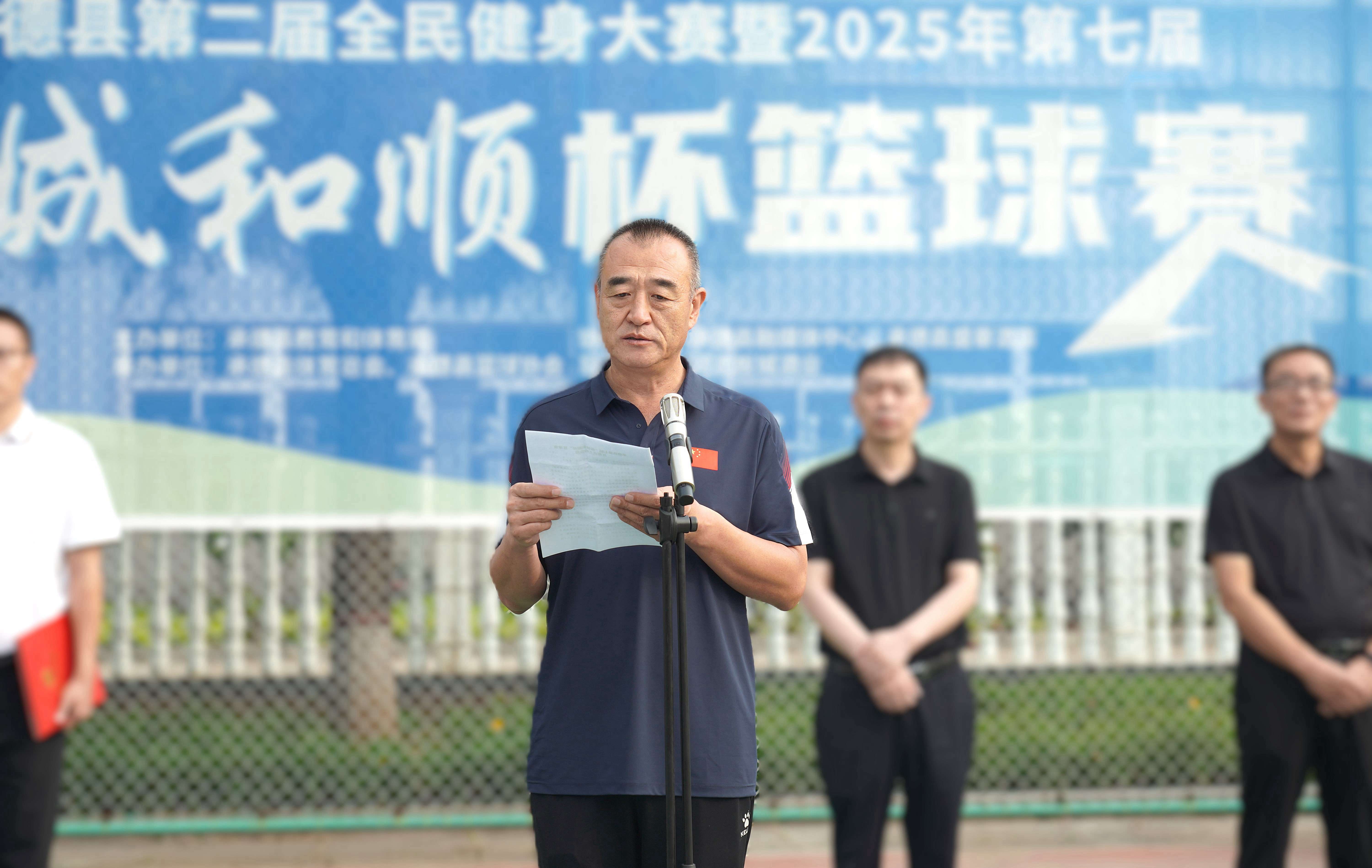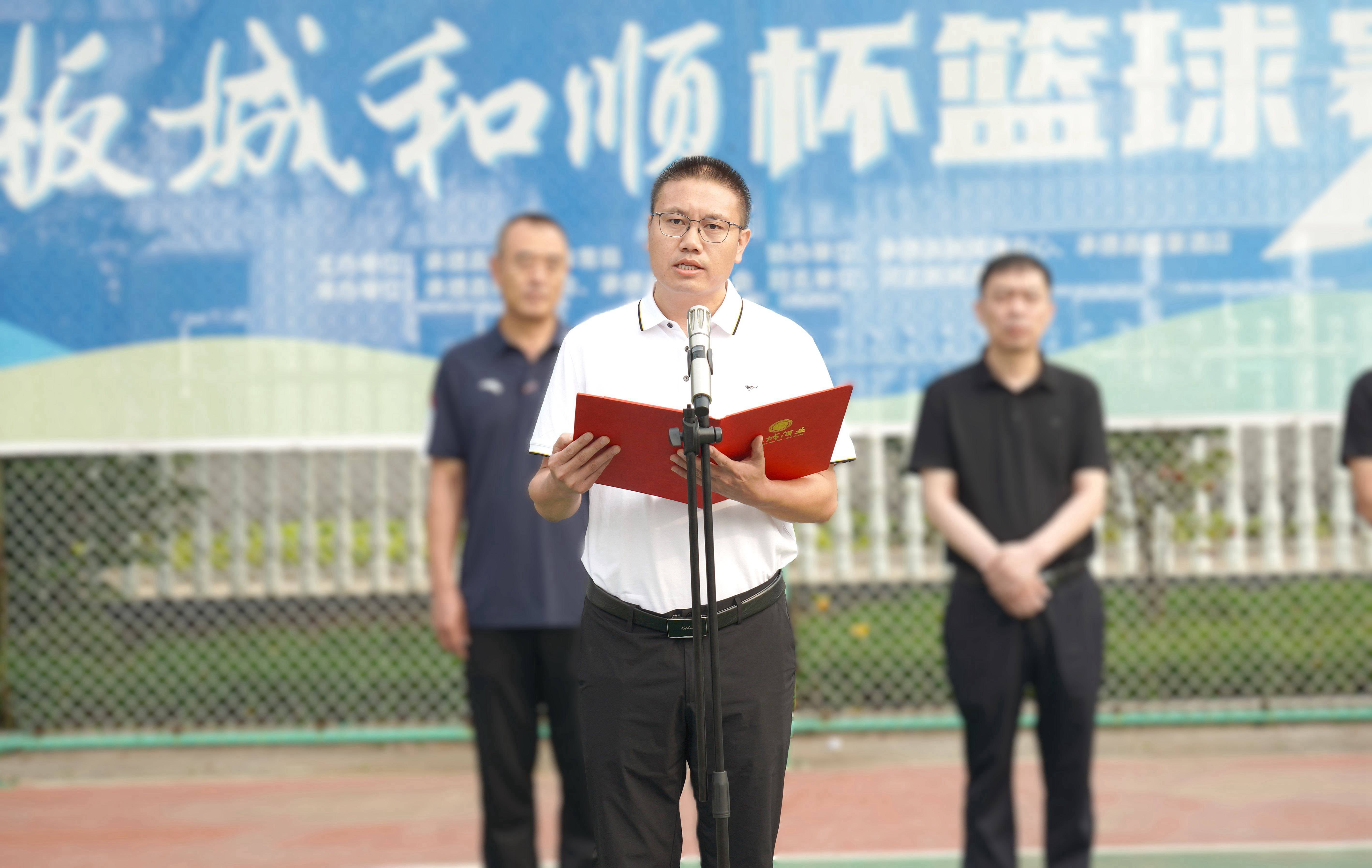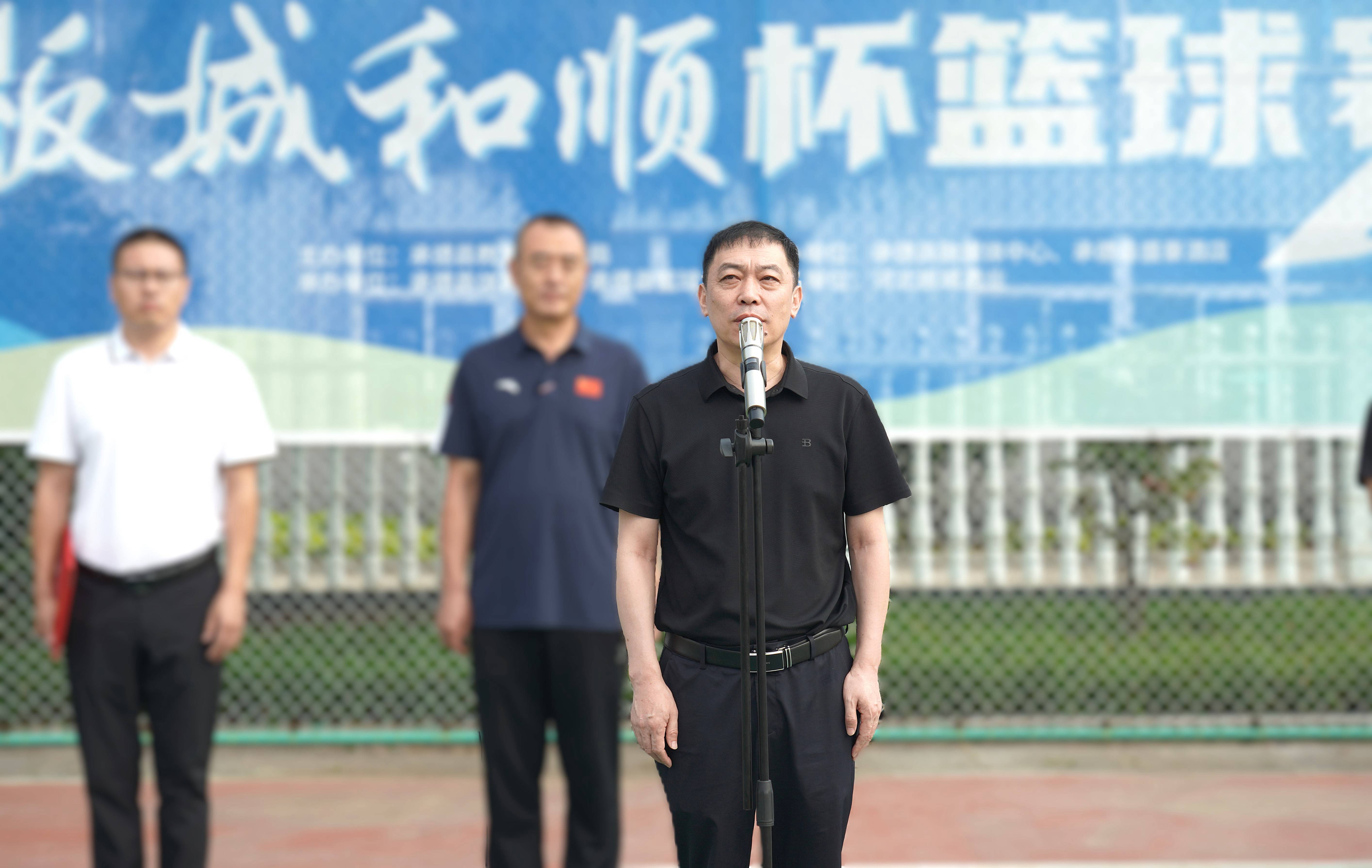 承德縣教育和體育局體育工作指導(dǎo)中心主任朱瑞東發(fā)表致辭,朱主任講到:“縣教體局聯(lián)合板城酒業(yè)持續(xù)舉辦體育賽事活動,連續(xù)舉辦七屆‘板城和順杯’籃球賽事,為承德縣全民健身提供了重要平臺,縣教體局將持續(xù)開展全民健身活動,搭建全民健身平臺,開展形式多樣的體育活動,讓承德縣人民參與多種體育賽事。”