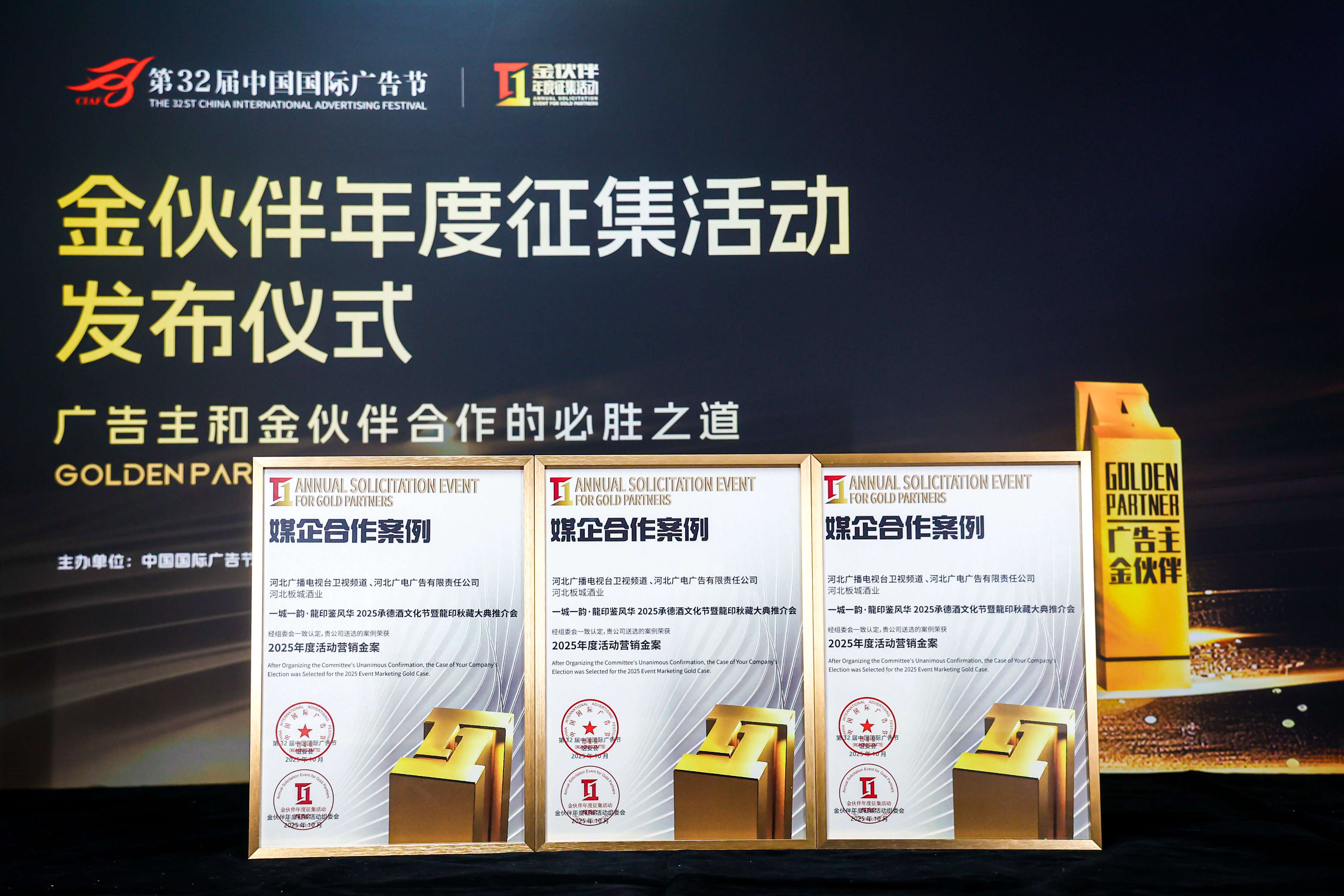 同時(shí),板城酒業(yè)與河北衛(wèi)視合作的“一城一韻,龍印鑒風(fēng)華2025承德酒文化節(jié)暨龍印秋藏大典推介會(huì)”案例榮獲2025年度活動(dòng)營(yíng)銷金案。