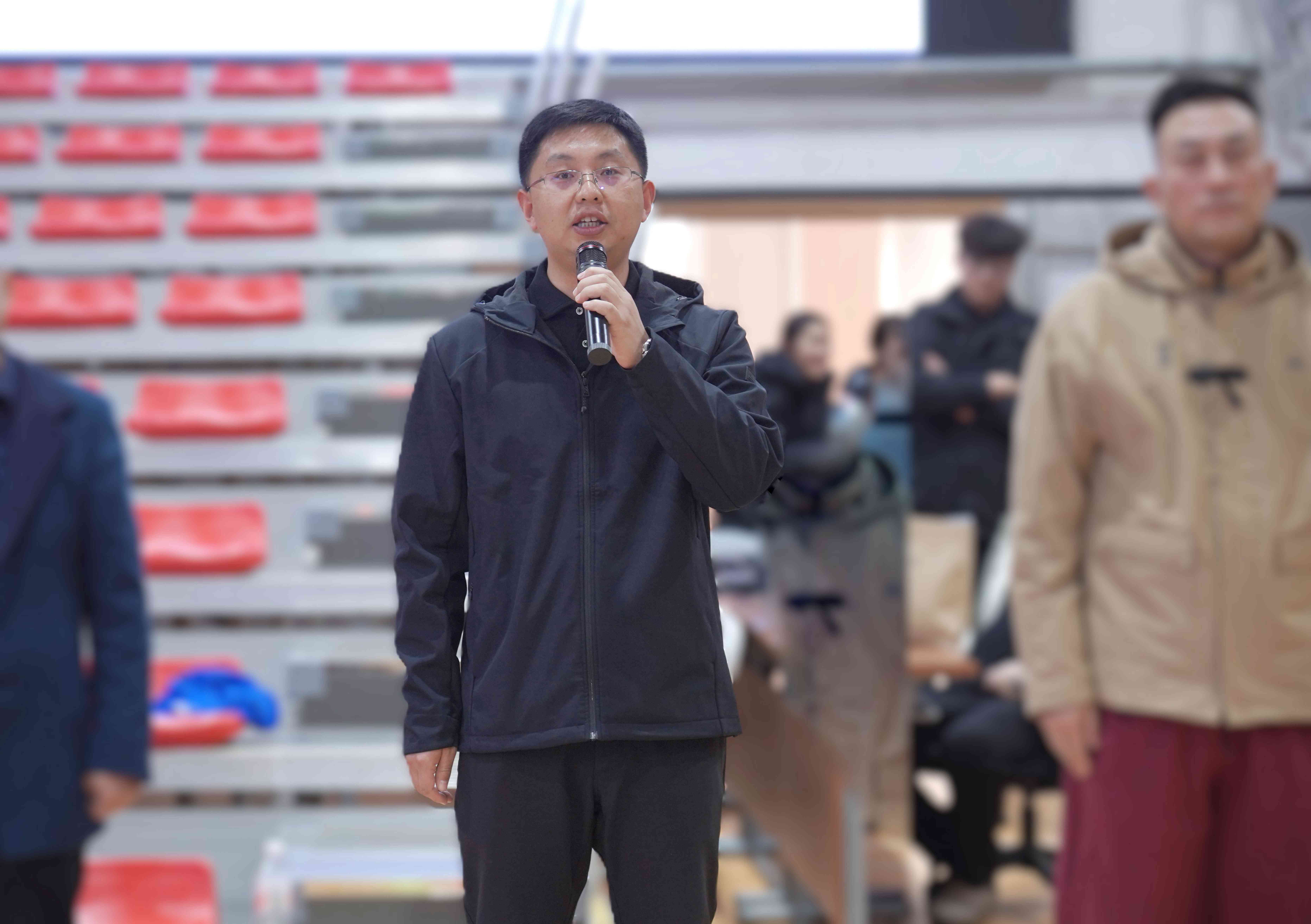 河北板城酒業(yè)銷售市場總監(jiān)王曉波致辭:“承德這片土地孕育的‘和合共生’精神,與板城酒業(yè)秉持的‘和順’文化一脈相承。我們期待本屆賽事不僅能展現(xiàn)競技體育的激情,更能讓同學(xué)們?cè)趫F(tuán)隊(duì)協(xié)作中品味成長之味,讓‘板城和順’的醇厚與青春的汗水交融,共釀今冬最美記憶。”