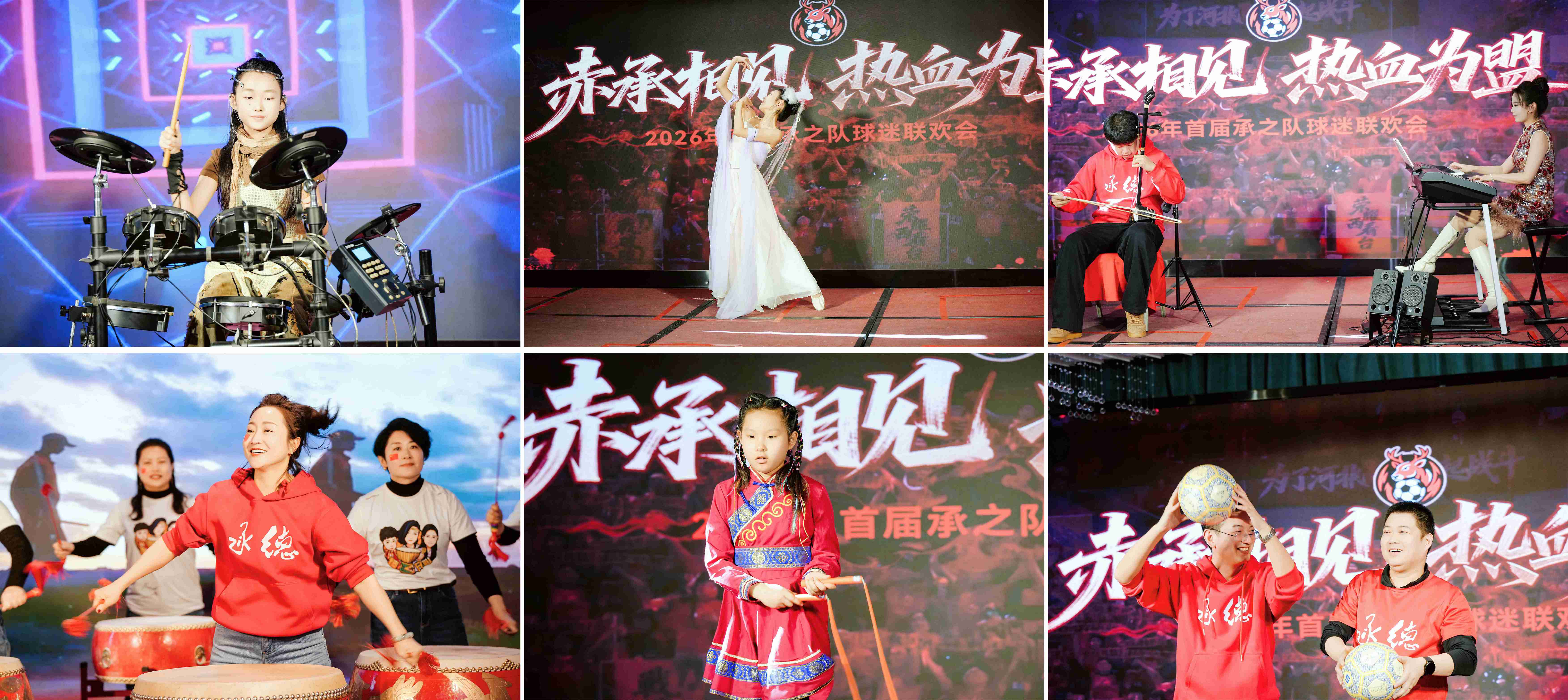 聯(lián)歡會(huì)現(xiàn)場(chǎng)氣氛高漲,精彩紛呈。承德隊(duì)的球員們親臨現(xiàn)場(chǎng),與“承之隊(duì)”的家人們親切互動(dòng),簽名、合影,其樂(lè)融融。